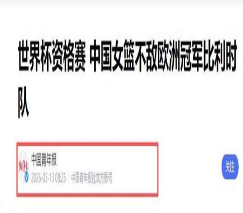中國青年報2026-03-13《世界杯資格賽 中國女籃不敵歐洲冠軍比利時隊》