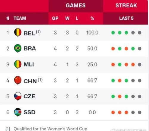 不過B組剩余的4個對手,中國女籃目前已經(jīng)接連戰(zhàn)勝馬里女籃、南蘇丹女籃,前三場2勝1負積分達到5分,接下來將對陣捷克女籃與巴西女籃。原本中國女籃將與捷克女籃正面對決,爭奪一個提前出線的名額,但在巴西女籃擊敗馬里女籃后,中國女籃得以提前兩場出線晉級女籃世界杯。
