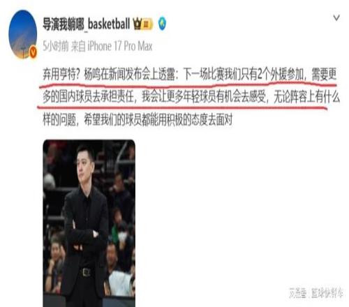 慘遭深圳隊(duì)雙殺后,作為遼寧隊(duì)主教練,楊鳴在賽后的采訪中也是盡顯無奈,他甚至已經(jīng)暗示,遼寧隊(duì)本賽季就這樣,言外之意大有擺爛的意思。“遼籃目前這個(gè)陣容調(diào)整空間不大,現(xiàn)在就是這樣情況。”楊鳴非常無奈的表示。此外,楊鳴還進(jìn)一步透露,下一場面對山西隊(duì)時(shí),遼寧隊(duì)將再度啟用雙外援,而不是三外援。換句話說,作為球隊(duì)的第5外援,亨特大概率已經(jīng)被遼寧隊(duì)放棄了,這一戰(zhàn)他只獲得2分多鐘登場時(shí)間,沒有得分進(jìn)賬。
