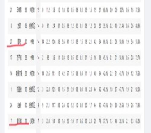 但這些球員搭在一起產生的化學反應,似乎并沒有很強烈。截至第16輪,北京男籃場均助攻數大致為19.5個,聯盟第11的水平。比賽時,也經常能看到北京男籃外線傳來傳去,最終還是由外援單打終結的場景。另外,他們在球員使用和戰術分配上也存在一定不合理性,部分球員的數據可說明此問題。