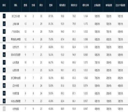 CBA常規(guī)賽第16輪結(jié)束,目前積分排名前三的球隊分別是浙江廣廈隊、上海隊和廣東隊,北京首鋼隊跌至第五,遼寧隊跌...