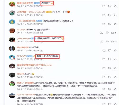球迷紛紛評論杜鋒,“直接點名阿杜就可以了”、“就差公開點名杜指導”、“杜鋒只會甩鍋”、“直接點名就行,在球迷不知曉任何內部情況下,只能靠猜靠陰謀論,所以說網上的謠言四起不是沒有原因,為何要割裂球隊與球迷之間的關系呢,宏遠的公關向來做的就不好,包括傷病通告”。球迷說得不錯,媒體人別跑剛背豬說的也不錯,如果內涵杜鋒也沒有錯,杜鋒確實是一個罵人和甩鍋見長的教練,三連冠前六年無冠,三連冠后又五年無冠了,如今江郎才盡,黔驢技窮,連一個陣容嚴重不全、排名非常靠后的新疆隊也打不過,主場大比分輸給遼寧隊太丟人。如今5戰4負,威信掃地,原來支持、贊美他的球迷也紛紛倒戈痛批他。大家都要求杜鋒下課,都說杜鋒一日不走,廣東隊就沒有出頭之日。