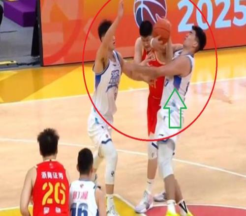 廣廈隊(duì)球員胡金秋,在接到隊(duì)友的傳球,剛想要發(fā)動(dòng)進(jìn)攻,然而,就在這個(gè)時(shí)候,寧波隊(duì)兩名球員對(duì)胡金秋進(jìn)行包夾,我們可以看到,寧波隊(duì)中鋒魯吐布拉,從胡金秋的身后沖過(guò)來(lái),二話不說(shuō),就與胡金秋糾纏在一起。