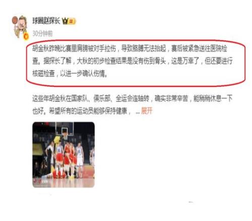 來(lái)到醫(yī)院之后,胡金秋馬上被安排進(jìn)行檢查,根據(jù)最新消息了解,從檢查結(jié)果來(lái)看,還是一個(gè)比較理想的結(jié)果,胡金秋此番受傷沒(méi)有傷到骨頭,可以說(shuō),這也是不幸中的萬(wàn)幸了。不過(guò),具體的情況,還要進(jìn)行一次核磁檢查,從而進(jìn)一步確認(rèn)胡金秋的傷情。