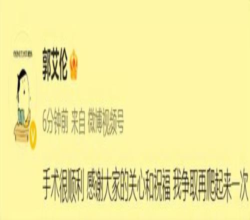 郭艾倫在做完手術之后,也是在第一時間向大家報了平安,說自己的手術十分順利!已經進入休養康復階段,讓大家不要擔心。