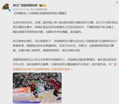 值得一提的是,胡金秋之前,廣廈隊(duì)已失去了外線核心孫銘徽,后者由于遭遇了右距腓前韌帶部分撕裂,右踝內(nèi)側(cè)三角韌帶、跟腓韌帶損傷,仍處于傷停狀態(tài)。