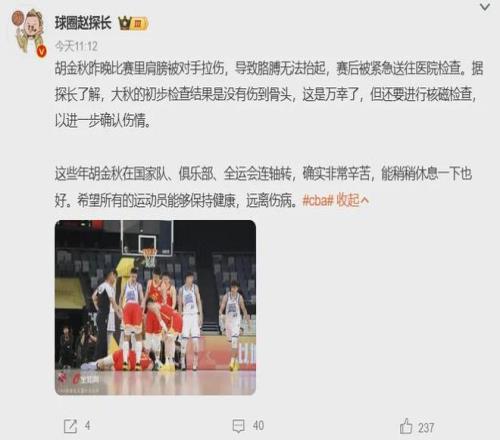 No!胡金秋最新傷情報(bào)告!這可是中國男籃第一核心