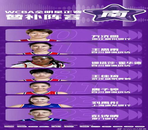 萬濟圓入選全明星正賽南區替補陣容;李雨汧、代夢帆入選星銳賽南區陣容;董可爾入選三分球大賽;周琪入選技巧大賽。