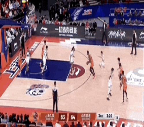 半場結束前,古德溫先是外線三分命中,又是飛身補籃得手,單節得到9分。張鎮麟還命中壓哨三分,上海男籃這一節狂砍41分,70比49將領先優勢瞬間拉開到20分以上。大鯊魚半場70分也打破了本賽季由他們自己保持的半場68分的紀錄。