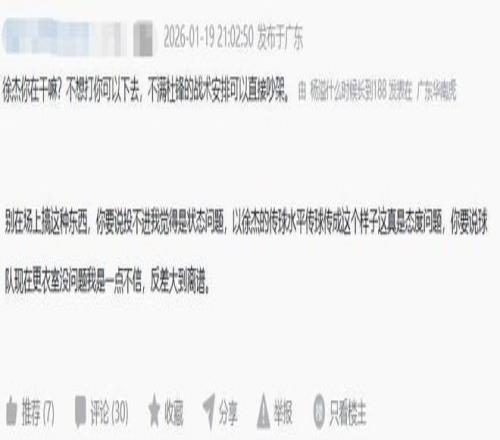 不滿徐杰表現的球迷則是對徐杰提出了批評,甚至還有球迷直接嘲諷徐杰:段睿琪撞一下,他就東倒西歪;還有球迷則認為徐杰是最近和女朋友走的太近了,心思完全沒有放在球場上。