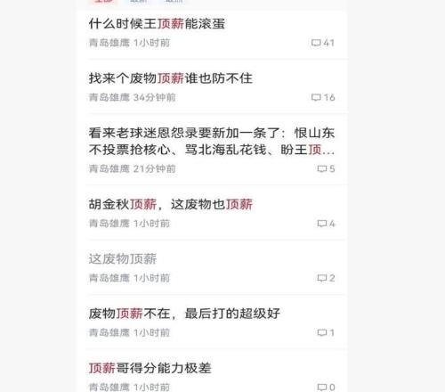 王奕博兩頭不討好,新老東家球迷都噴他。青島球迷說,“什么時(shí)候王頂薪能滾蛋”、“找來個(gè)廢物頂薪誰也防不住”。老東家球迷說,不知道為啥對(duì)我們?cè)箽饽敲创螅⌒葙惣痉娇∫查_了400萬合同留你!你自己要走!然后一直感覺跟我們有仇似的,回我們主場打球,比賽下場的時(shí)候,手放耳旁做挑釁,賽后老隊(duì)友找你圍一起敘舊不情不愿!現(xiàn)在去青島拿頂薪,天天被青島球迷噴,不知道有啥想法。