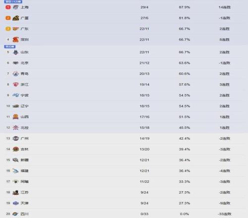 另外,排名靠后的南京、江蘇、天津、四川基本上提前無緣季后賽了。四川33連敗,這紀(jì)錄還在繼續(xù)刷新,有點(diǎn)離譜。而北控、廣州、吉林這三支球隊(duì)在季后賽附加賽門檻線位置瘋狂較勁,誰最后能進(jìn)都不好說。總是,這賽季上海和深圳成為了第一檔奪冠大熱,他們的出色表現(xiàn)遠(yuǎn)遠(yuǎn)要強(qiáng)于北京和廣東等球隊(duì)。