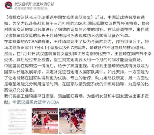 這件事情的起因,是中國女籃為了備戰2026年國際籃聯女籃世界杯資格賽,籃協對國家女籃的集訓名單進行了細致的調整與必要的增補,來自武漢盛帆黃鶴女籃的隊長王佳琦憑借出色表現成功入選國家隊征召名單,她在本賽季表現很強勢,作為組織后衛,她場均能夠攻獻11.7分4.1個籃板以及6.7次助攻(近期遇到傷病沖擊)。