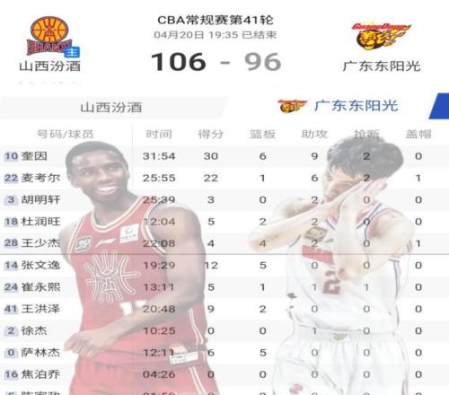 4月20日這場萬眾矚目的對決,廣東隊開局氣勢如虹,一度領先山西隊11分之多;然而節奏尚未穩固,便迅速被對手反超比分。