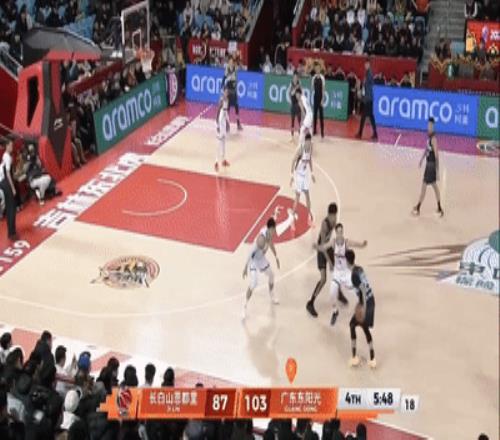 第二節雙方繼續不設防,吉林拉不住奎因,廣東防不住威爾遜,接下來廣東連續出現2次失誤,威爾遜籃下強起,姜偉澤三分抬手就有吉林兩度扳平比分,關鍵時刻奎因強懟趙率舟怒鑿2+1,低迷了半節的薩姆納隨后也單挑賈昊制造2+1。