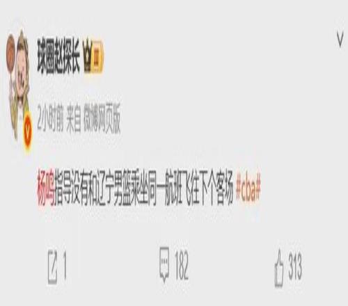 緊接著國內知名媒體人表示楊鳴沒有跟隨遼寧隊,準備與四川隊的客場比賽。