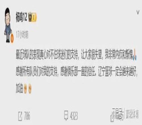 楊銘主教練在這個(gè)時(shí)候離開,很多球迷都認(rèn)為是因?yàn)閼?zhàn)績(jī)不理想而離開的。同時(shí)很多球迷疑惑,楊銘離開遼寧男籃是主動(dòng)離開還是被動(dòng)離開呢?從一些媒體人和一些事情爆料來(lái)看,楊銘應(yīng)該是自己主動(dòng)離開遼寧男籃的,楊銘最近在社交媒體發(fā)文表示:“最近球隊(duì)的表現(xiàn)真心對(duì)不住球迷們的支持,讓大家很失望,我非常內(nèi)疚和慚愧。”
