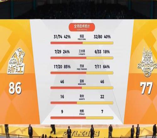 末節決戰,山東隊上來轟出一波15-5,追到只差3分。廣廈隊隨后在布朗的帶動下,連續砍分,再次拉大分差到了兩位數。最終,廣廈男籃主場86-77完美復仇山東隊,贏得還是很完美的,畢竟全場幾乎都是壓制著山東隊的。