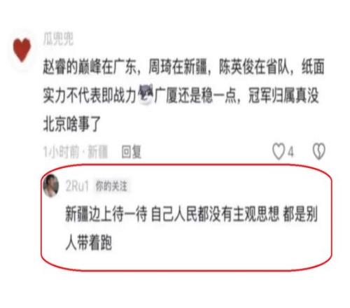 面對球迷的質疑,趙睿也是十分郁悶,同時,也是有一點生氣,于是,雙方就在網絡上吵了起來。結果,趙睿也是說了一些不應該說的話,導致雙方的爭吵更加激烈。接下來,還有很多新疆隊球迷去投訴趙睿……