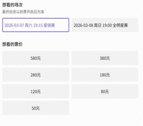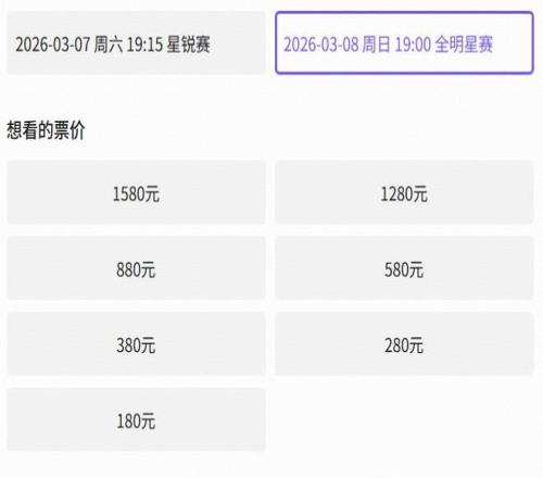 據票務網站顯示,全明星首日的票價最低50元,最高580元。次日的票價最低180元,最高1580元。