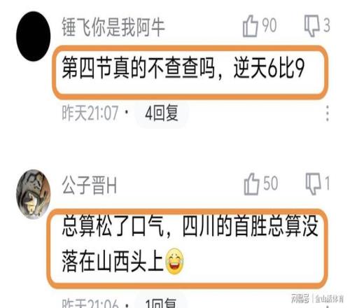 末節雙方打了個6-9比分,賽后網友們也是紛紛吐槽道“第四節真的不查查嗎,逆天6比9?!?;“總算松了口氣,四川的首勝總算沒落在山西頭上”;“好一個6-9,這不是你想的那個69式,而是中國職業籃球第一聯賽單節得分,牛的嘞!”;“我讓我村里打球賽的朋友上去打也不止這個分數”;“單節6-9,跟韓國6分鐘多鐘不得分一樣離譜”;“單節兩隊6-9,是職業球員干的事嗎?”……