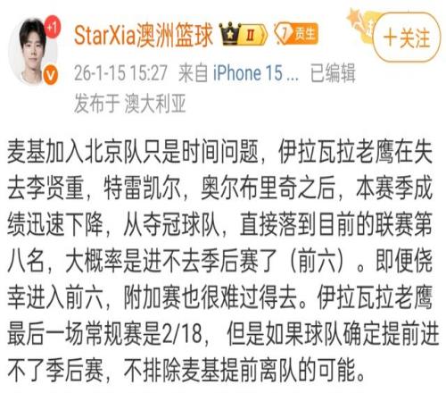 之前媒體報(bào)道了北京首鋼接觸了麥基,但有很大的變數(shù),根據(jù)最新消息,麥基加盟北京首鋼只是時(shí)間問題了,由于大概率無緣NBL季后賽,所以麥基有可能提前離隊(duì),甚至有可能在第一階段就加盟北京首鋼。