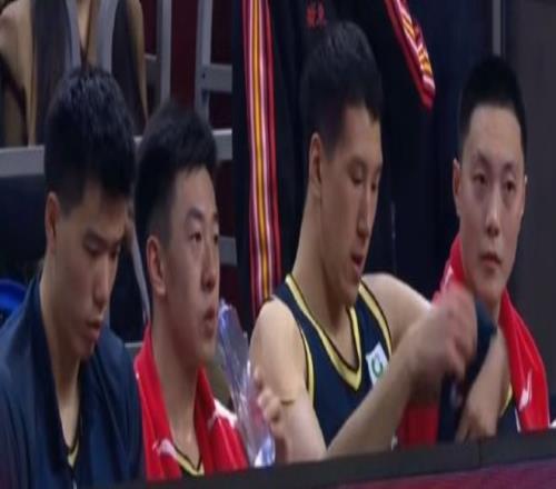 再來看看廣東男籃末節還剩5分鐘左右替補席的沮喪情緒吧,胡明軒的臉上寫滿了沮喪,王少杰感覺都要輸哭了,廣東三個外援非常無奈,薩林杰、奎因、薩姆納應該就想比賽快結束早點離場吧。