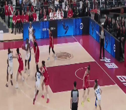 進入到下半場:國際聯(lián)隊逐漸適應了比賽的強度,開始加強逼搶。中國隊中鋒使用劉禹彤、前鋒是陳明伶和羅欣棫,后衛(wèi)使用張曼曼、楊舒予。這也是宮魯鳴指導的技戰(zhàn)術(shù)特點:上下半場首發(fā)一致。劉禹彤籃下拿分: