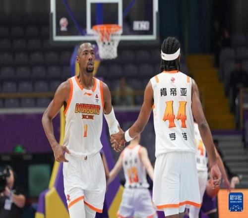 1月15日,江蘇肯帝亞隊球員賈爾斯(左)與隊友亨特在比賽中擊掌。新華社記者 謝晗 攝