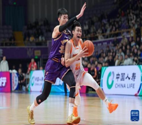 1月15日,江蘇肯帝亞隊球員龐崢麟(右)在比賽中進攻。新華社記者 謝晗 攝