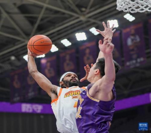 1月15日,北京控股隊球員尼爾森(左)在比賽中進攻。新華社記者 謝晗 攝