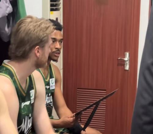 在頒獎的時候,王世龍將投手給到漢茲,確實這場他砍下了32分,他在進攻端就是摧毀性的表現,而且串聯效果也不錯,能帶動全隊。當然因為第一次領獎,漢茲還是比較懵逼的,畢竟他沒有經歷過,還在詢問隊友什么情況。