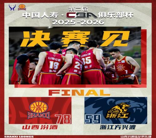 北京時間2026年2月9日19:30,第二屆中國人壽·CBA俱樂部杯半決賽繼續(xù)進行,山西汾酒在內(nèi)蒙古體育館,迎戰(zhàn)浙江方興渡。本場比賽,山西隊準備充分,籃板球拼搶積極,進攻也比較耐心,最終順利取勝,但全隊需擺正心態(tài)。正如潘江指導賽后所說,大家一定要保持清醒,對手大部分主力缺陣,需要繼續(xù)認真總結(jié),準備接下來的決賽。最終全場比賽結(jié)束,山西汾酒78:59戰(zhàn)勝浙江方興渡。