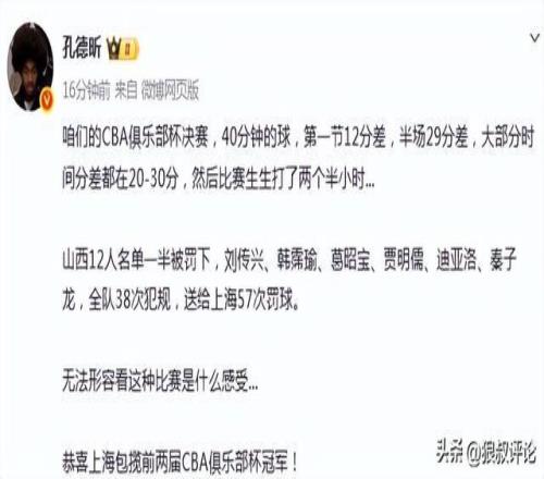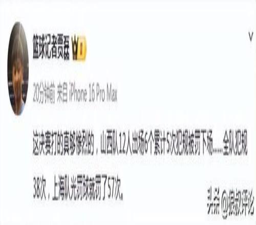 山西12人名單一半被罰下,劉傳興、韓霈瑜、葛昭寶、賈明儒、迪亞洛、秦子龍,全隊38次犯規,送給上海57次罰球。