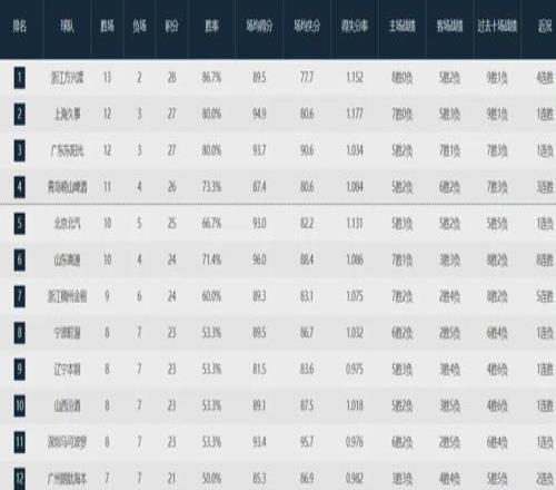 本賽季至今,折兵損將的遼寧隊(duì)僅取得8勝7負(fù)排名聯(lián)盟第九,前四位置分別是衛(wèi)冕冠軍廣廈隊(duì)13-2、上海隊(duì)12-3、廣東隊(duì)12-3和青島隊(duì)11-4。