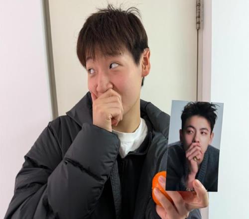 楊舒予曬出的搞怪照中,張茹模仿楊舒予左手放在嘴前,眼睛往右邊一瞥的表情包。相比之下,張茹臉上有點憋笑的意思。顯然她是非常開心地模仿楊舒予。李星諾也參與了這個活動,模仿楊舒予的這個表情包。