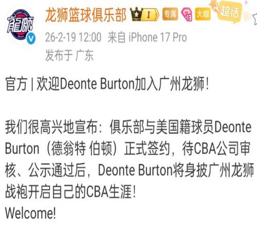 進入窗口期之后,更換外援成為CBA球隊的工作重點,本賽季成績不錯的廣州男籃也裁掉了第一階段的大外援托馬斯,他們官方宣布和曾經在NBA打球的伯頓完成了簽約,但廣州龍獅應該還會補充外援,畢竟現在的三名外援都是外線。
