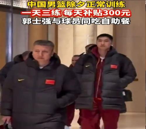 為了備戰第二窗口期的比賽,中國男籃在2月5日至2月23日開啟集訓,因為這期間剛好包含春節假期,國家隊的球員們也沒有放假。此前有媒體報道,中國男籃甚至除夕還在訓練,堅持一天三練,每天只補貼300元,作為主教練的郭士強也跟球員同吃自助餐。