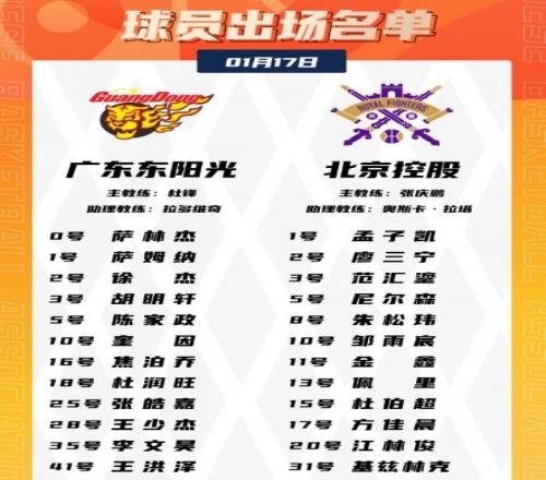 廣東:奎因27分9板3助、胡明軒18分8板4助、薩林杰17分7板5助、薩姆納15分4板4助、杜潤旺6分、徐杰5分5助2斷。北控:廖三寧25分7板5助2斷、佩里20分14板、尼爾森18分2板4助2斷、基茲林克13分3板、朱松瑋12分。