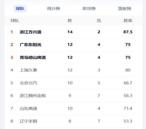 CBA最新排名:廣廈隊穩居第1,廣東二連敗排名第2,遼寧重回前8