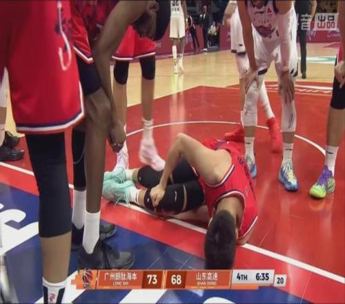 在倒地之后,郭艾倫捂住了自己的左腿膝蓋,也特別沮喪。