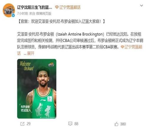昨天遼寧隊官宣了新外援布羅金頓,此前在3月3日官宣了新外援泰勒-哈維,這兩名小外援的加入將會很大程度上加強遼寧隊的后衛線,幫助球隊進入季后賽并且在季后賽里走得更遠。本賽季至今遼寧隊更換了多名外援,先后裁掉杰隆-布朗、奧利弗和亨特,新簽這兩名外援后如果不發生傷病或其他較大的變故,這個賽季應該不會更換新的外援了。