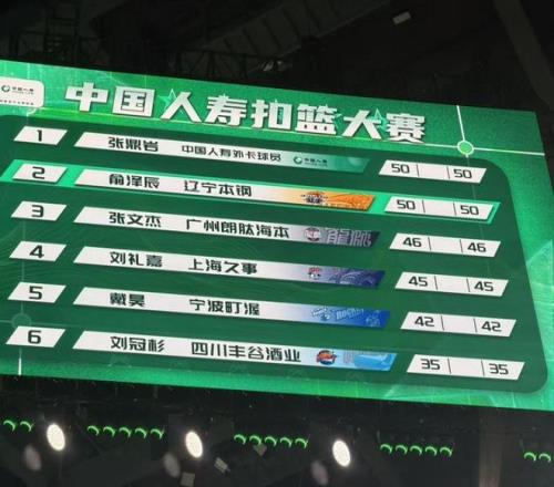 第5位出場的是四川球員劉冠杉,他嘗試拉桿反扣連續兩次失敗,最后完成勉扣得到35分。