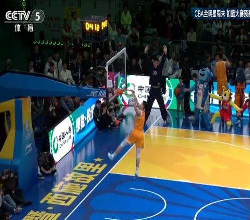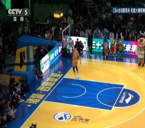 第6位出場的是遼寧球員俞澤辰,他嘗試轉體拉滿弓大風車扣飛,隨后360轉體雙手暴扣成功獲得50分滿分。