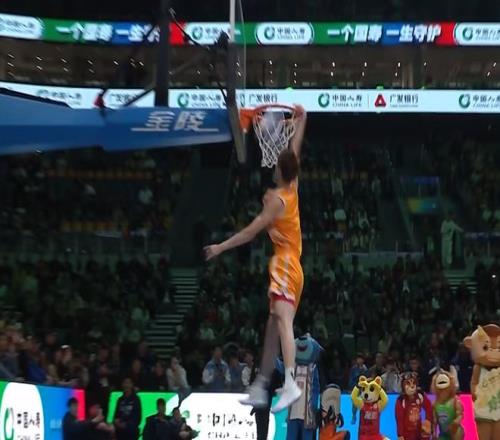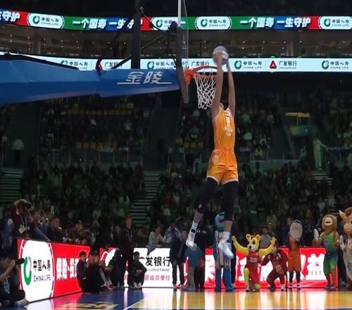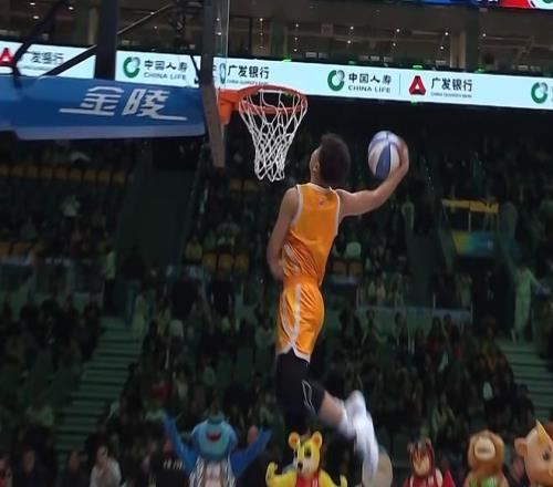 俞澤辰360°轉(zhuǎn)體雙手暴扣,最終獲得50分,輕輕松松。