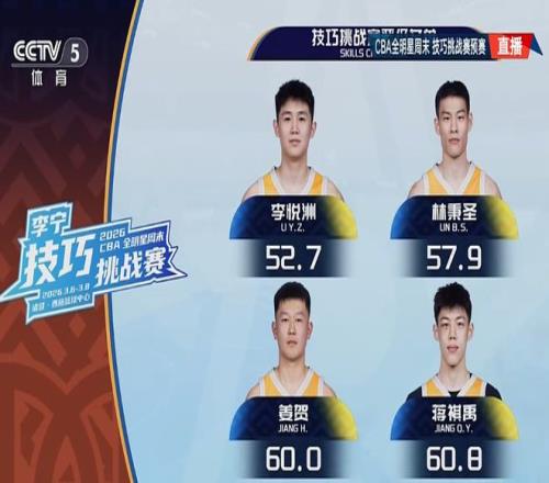 如此一來,李悅洲52.7秒,林秉圣57.9秒,姜賀60秒,蔣祺禹60.8秒,4人晉級(jí)技巧挑戰(zhàn)賽決賽,將在3月8日全明星正賽中場(chǎng)時(shí)間角逐技巧賽冠軍。