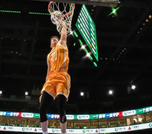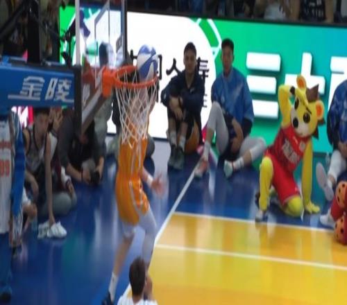 第三位出場的是俞澤辰,他嘗試轉體360扣籃失敗,隨后趙繼偉拋球打板,俞澤辰接球滯空轉體暴扣,也是獲得50分滿分,兩扣同樣是100分。