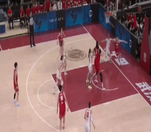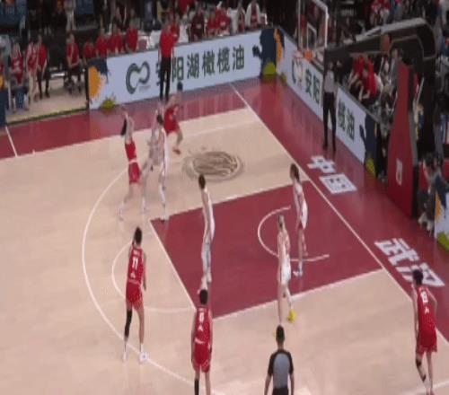 第四節(jié):李星諾也出戰(zhàn),尋找感覺。中國女籃大比分領(lǐng)先,保持球員的熱身狀態(tài)。唐子婷給到劉禹彤,后者一個(gè)很輕松的節(jié)奏變化得分: