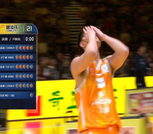 第二位出場的是曾凌鉉,花球點位5中4,但最后一個點位只進2個,絕殺的超遠(yuǎn)三分沒中,最終拿到21分;