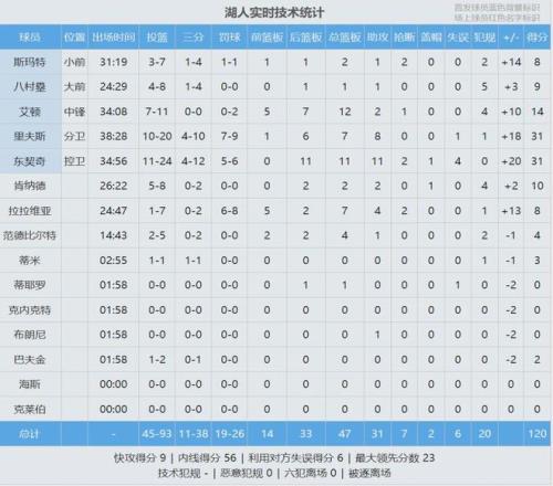 里夫斯20投10中,三分10中4,罰球9中7,砍下31分7板8助1失誤,正負值+18全場第二!湖人近7場6勝1負,東契奇賽后表示:“靠我們防守端的發揮,大家每個回合都在戰斗!”最近6場比賽,湖人有4場把對方限制在107分以內。